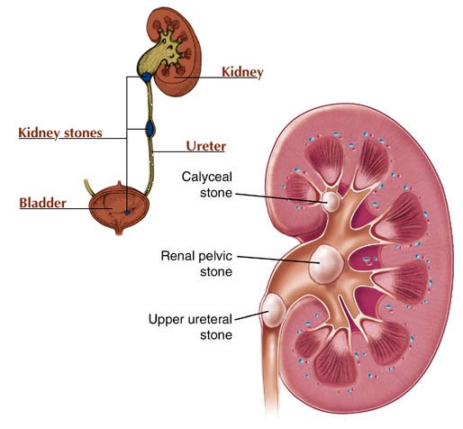 गुर्दे की पथरी बहुत आम है, और जब वे गुजरते हैं, तो वे पीठ और बगल में गंभीर दर्द पैदा करते हैं। गुर्दे की पथरी के कई संभावित कारण हैं, जिसमें एक विरासत में मिला विकार भी शामिल है, जो बहुत अधिक कैल्शियम को खाद्य पदार्थों और मूत्र पथ के संक्रमण या अवरोधों से अवशोषित करता है। कभी-कभी, दवाओं और आहार पत्थर के पुनः बनने को रोकने में मदद करता है। ऐसे मामलों में जहां पथरी बहुत बड़ी हो जाती है, पत्थरों को हटाने या शरीर से बाहर निकलने वाले छोटे टुकड़ों में तोड़ने के लिए उपचार किया जाता है।