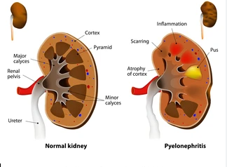 गुर्दे की सुजन (नेफ्राइटिस): यह गुर्दे की संदर्भित कोशिकाओं के संक्रमण के कारण हो सकती है और इसके परिणामस्वरूप गुर्दे में सूजन और दर्द हो सकता है।